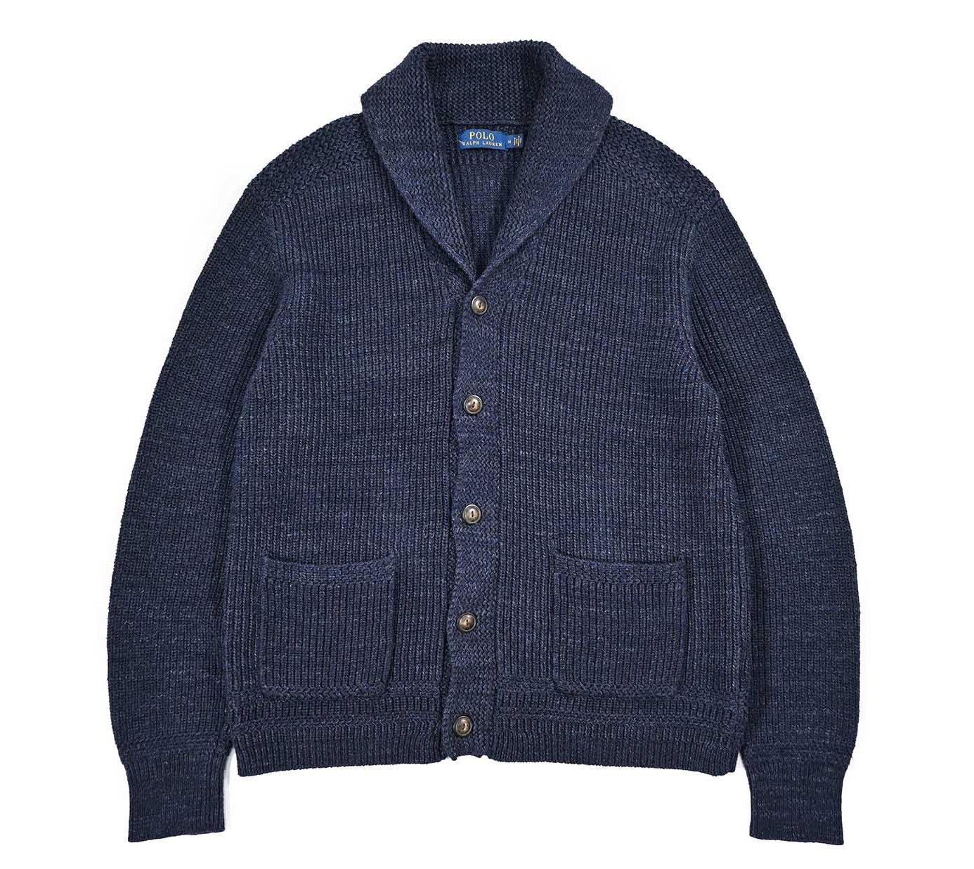 Used Polo Ralph Lauren Shawl Collar Cotton Knit Sweater Navy ラルフローレン [04-20965_01]