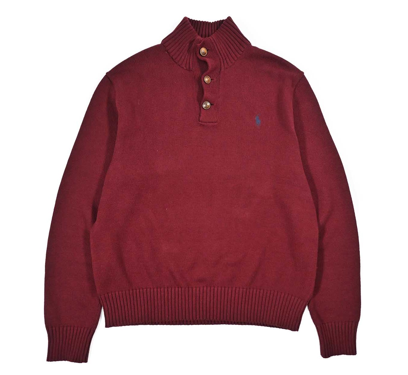 Used Polo Ralph Lauren High Neck Cotton Knit Sweater Burgundy ラルフローレン [04-20966_01]