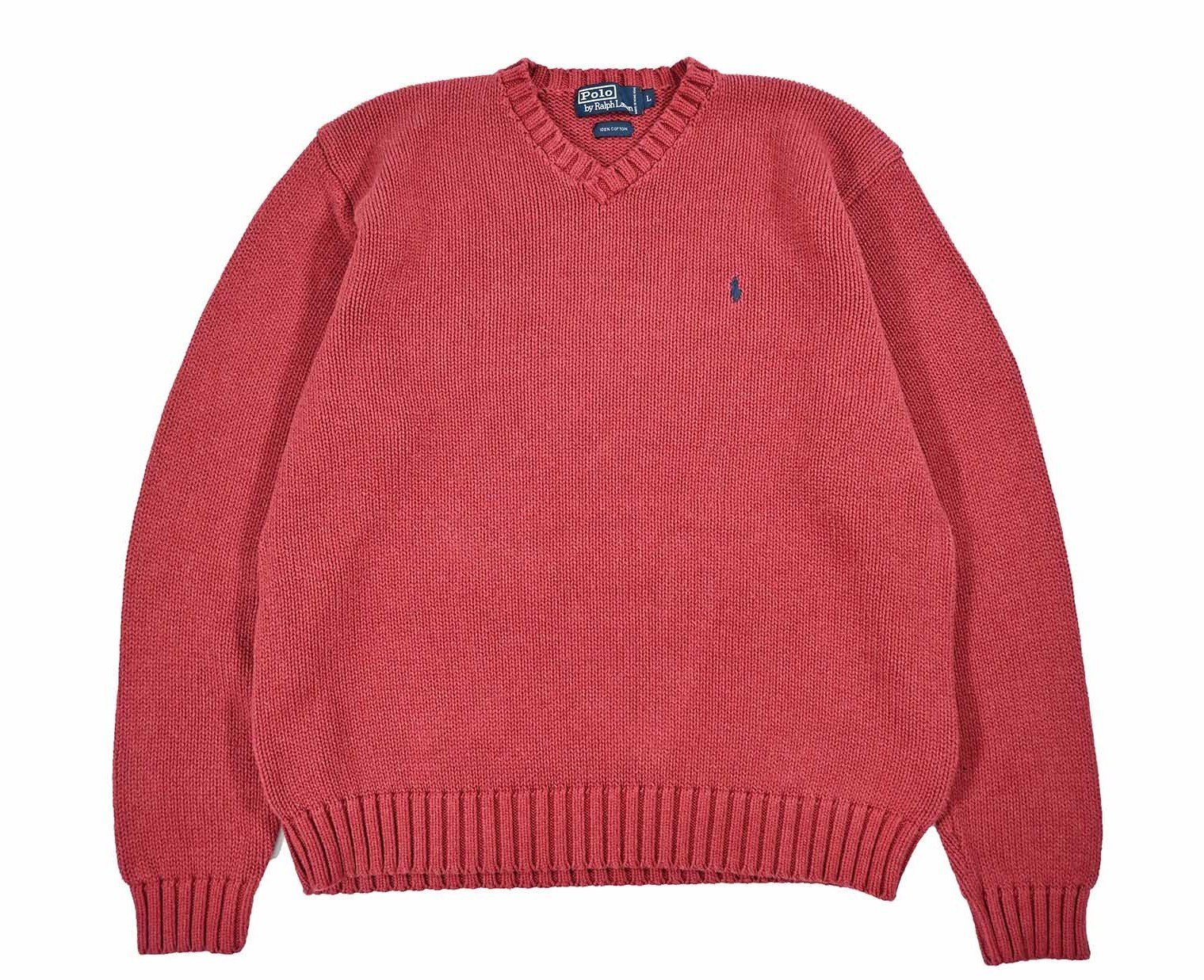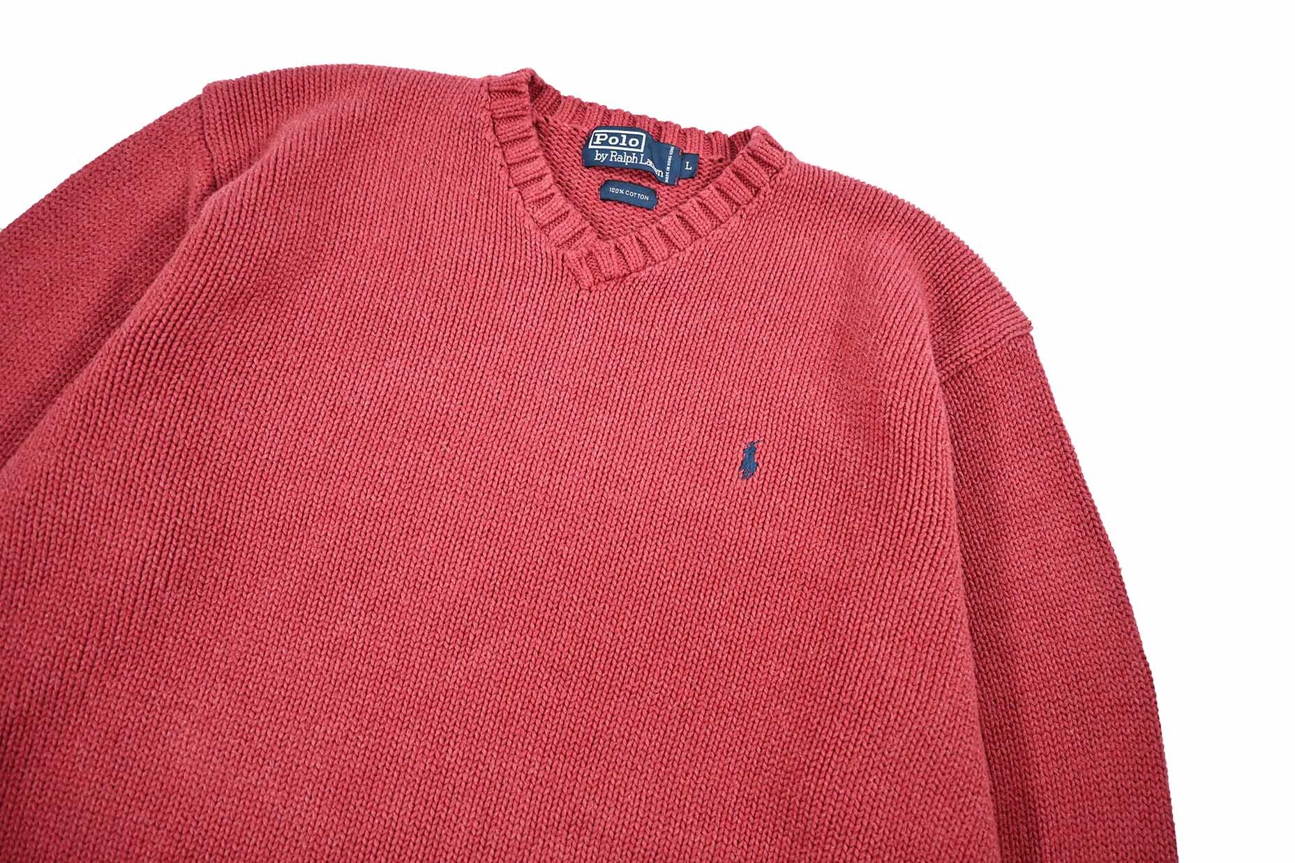 Used Polo Ralph Lauren V-Neck Cotton Knit Pink ラルフローレン [04-21094_01]