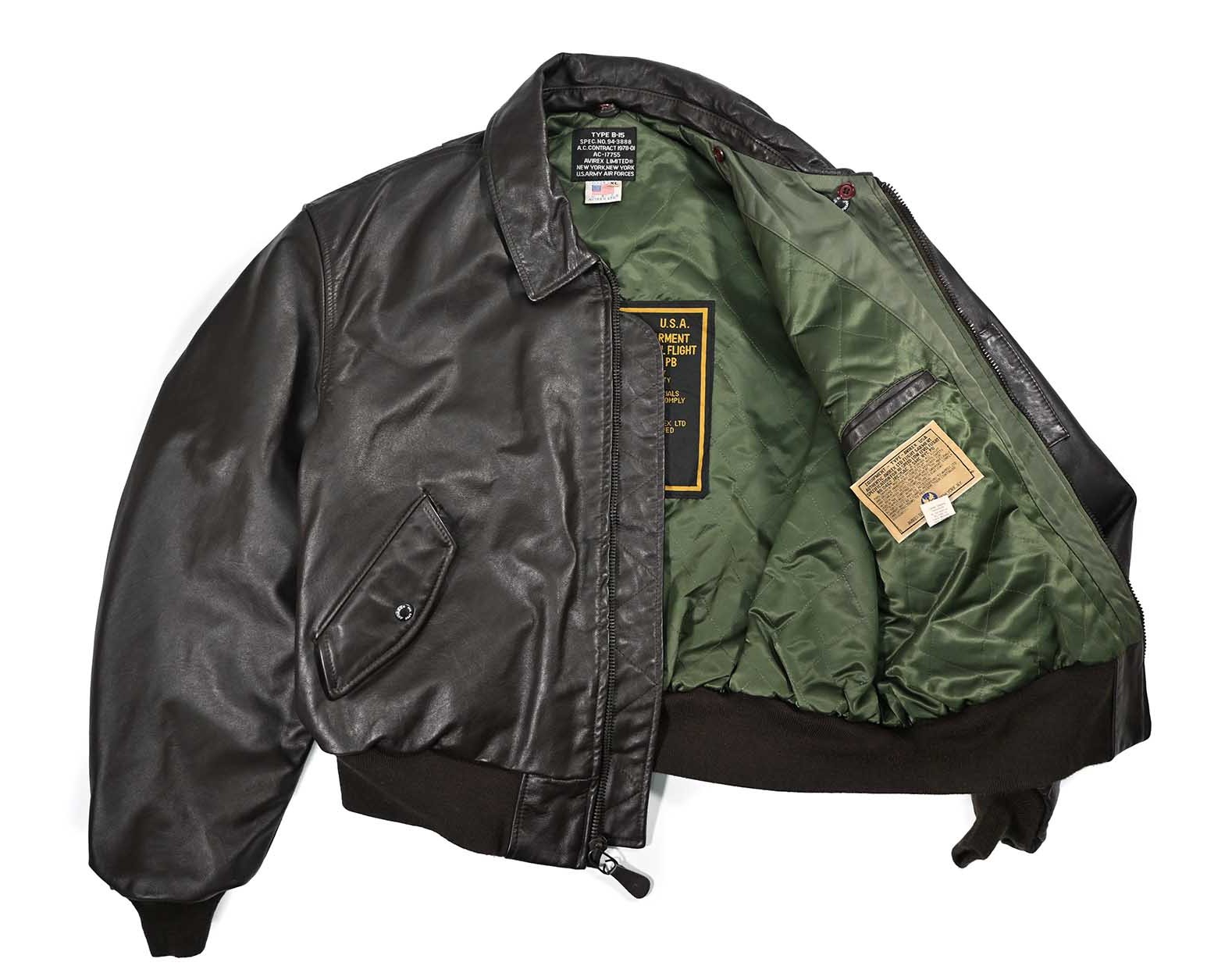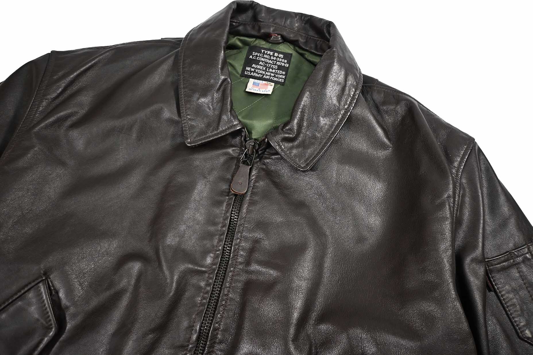 Used Avirex Type B-15 Leather Jacket Brown made in USA [02-21223_01]