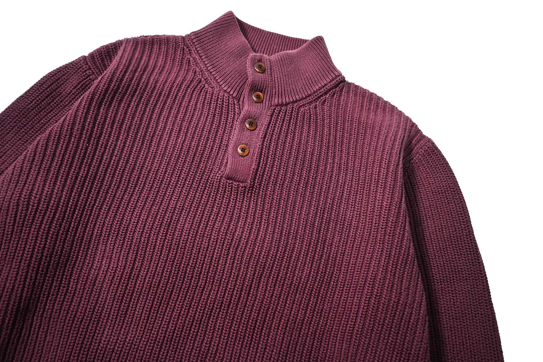 Used L.L.Bean Quarter Button Cotton Knit Sweater Burgundy [04-21804_01]