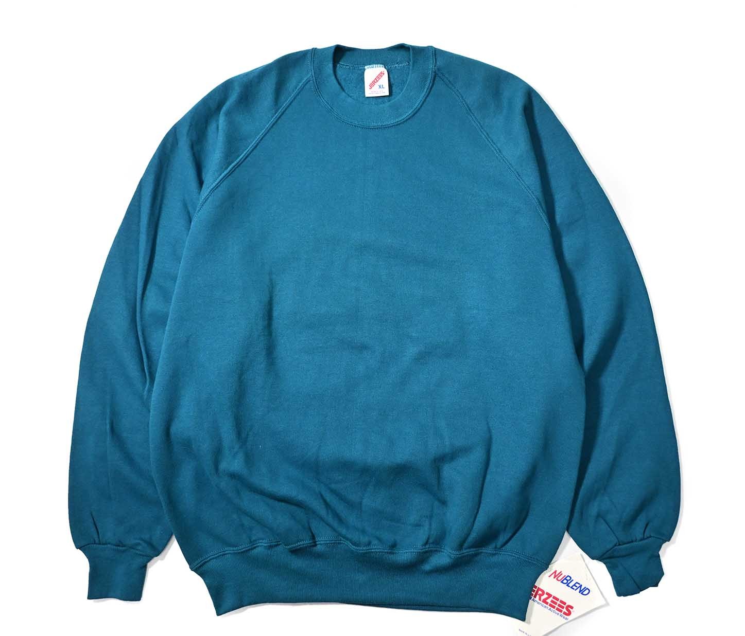 Deadstock Jerzees Raglan Sleeve Blank Sweat Shirt Blue made in USA [04-22007_01]