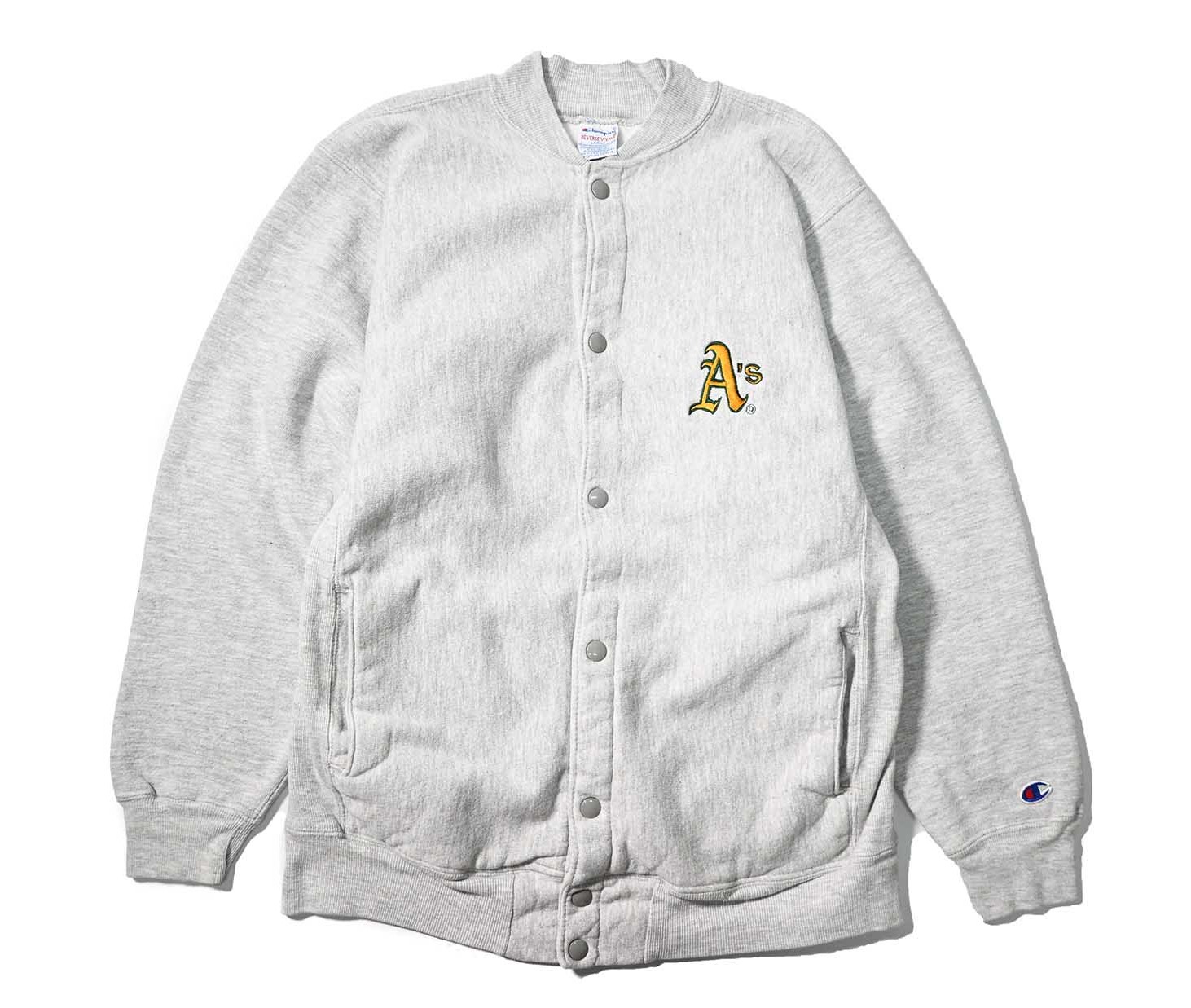 90s Used Champion Reverse Weave Snap Cardigan "Oakland Athletics" made in USA [04-22432_01]
