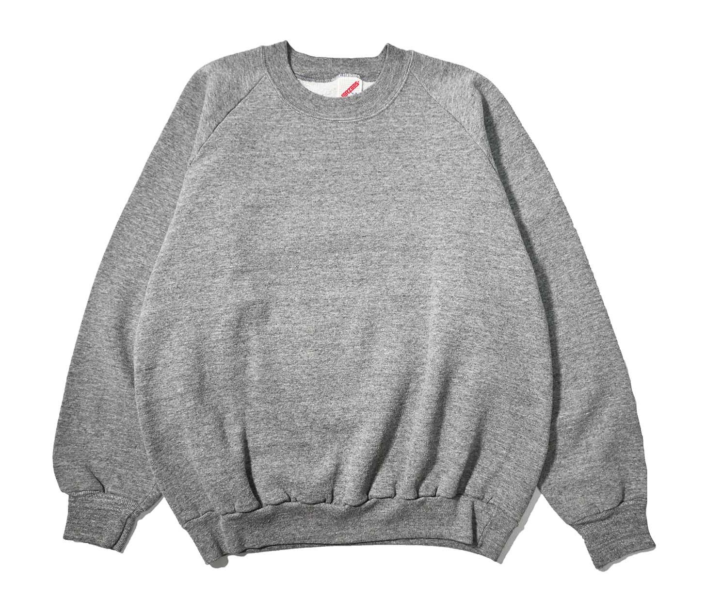 80-90s Used Jerzees Raglan Sleeve Blank Sweat Shirt Grey made in USA [04-22476_01]