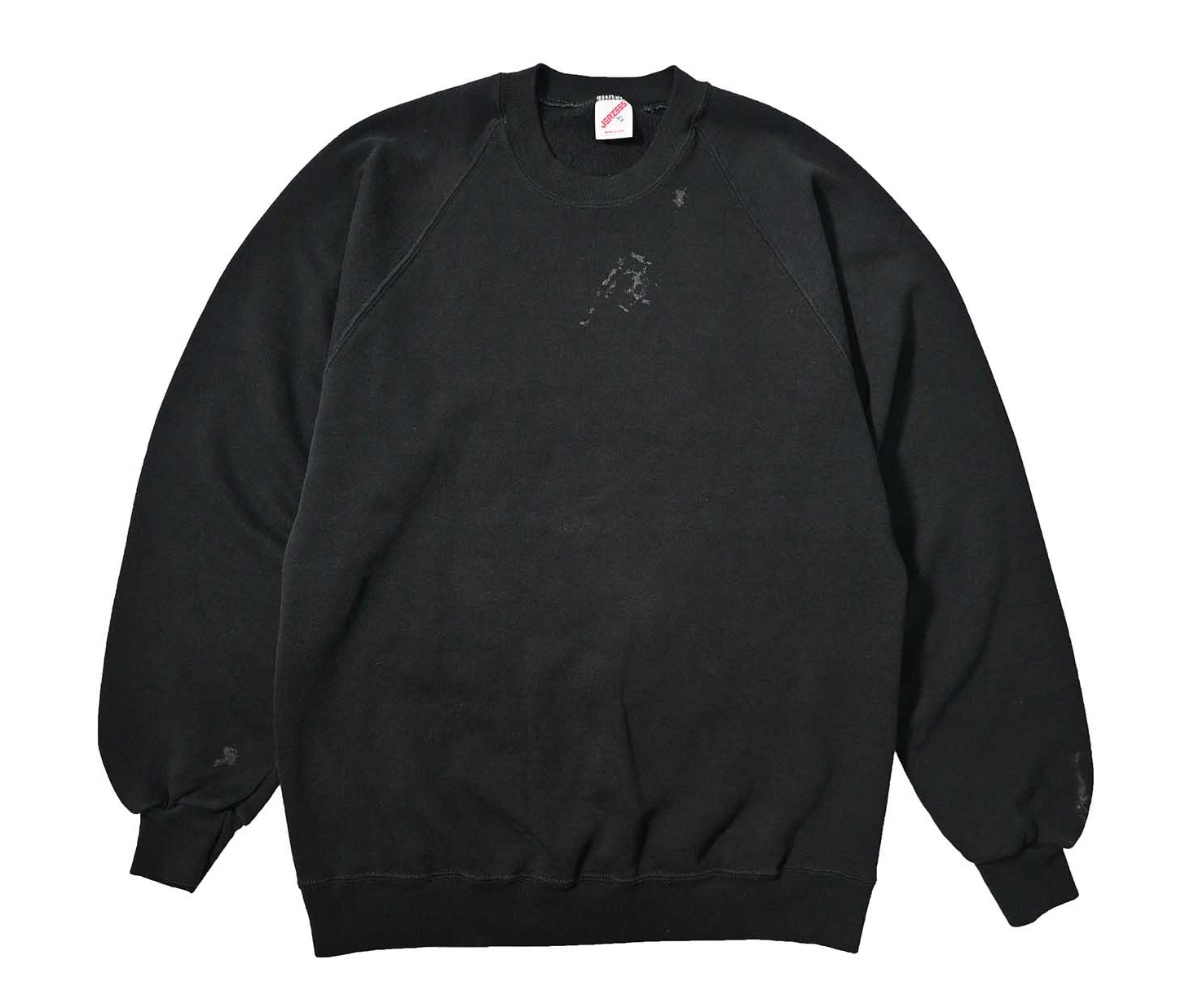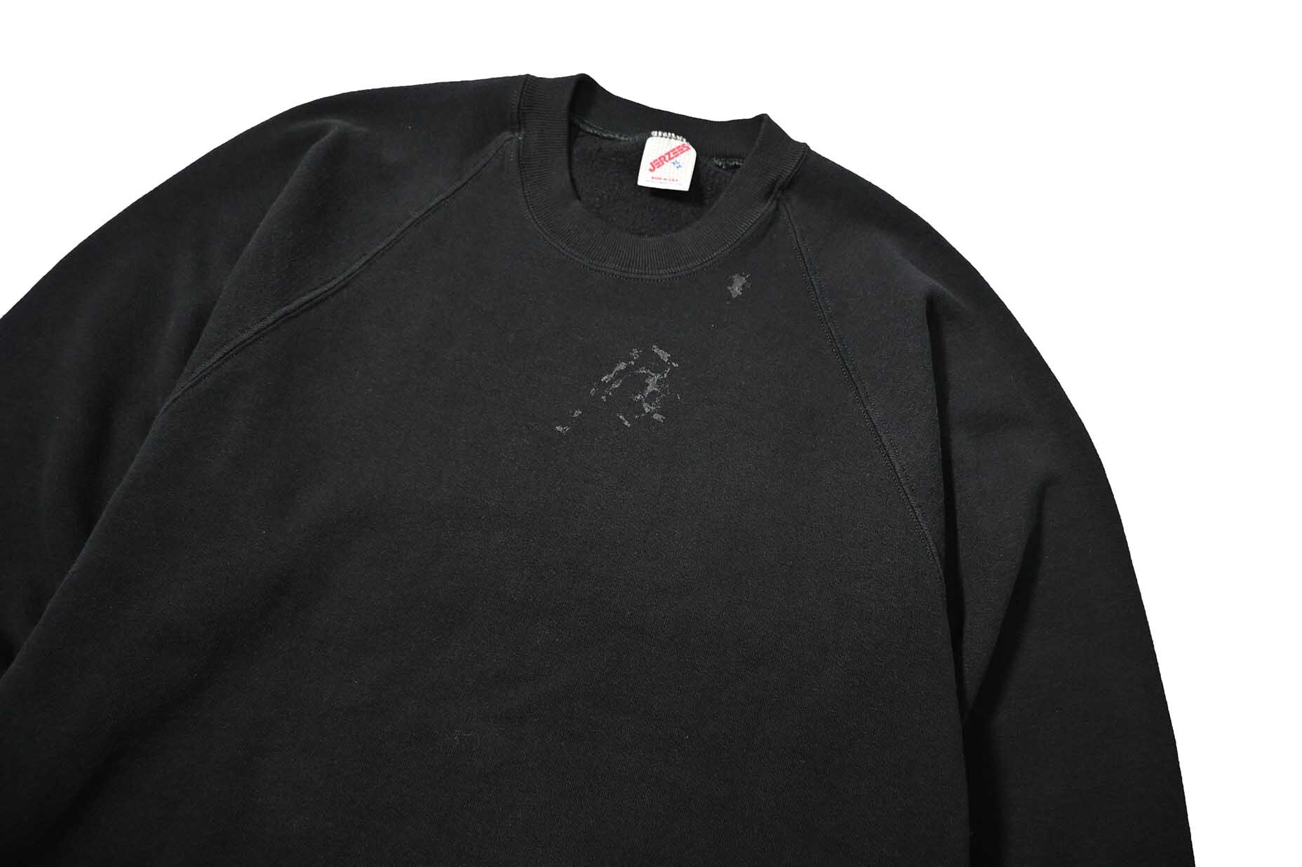 80-90s Used Jerzees Raglan Sleeve Blank Sweat Shirt Black made in USA [04-22487_01]