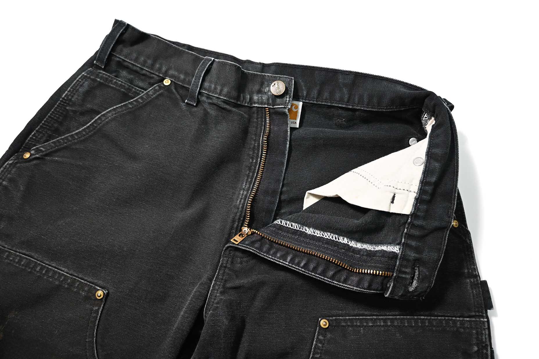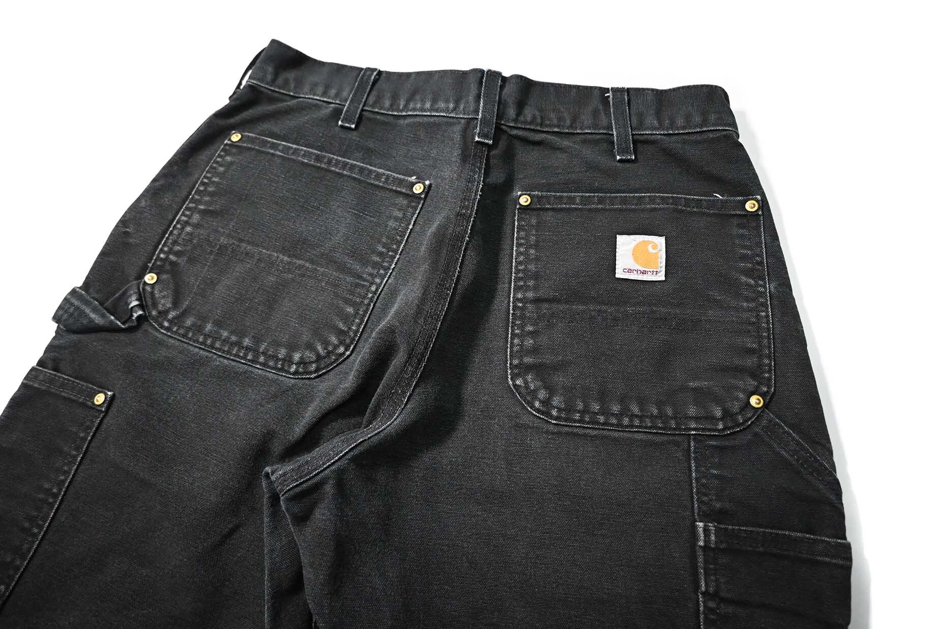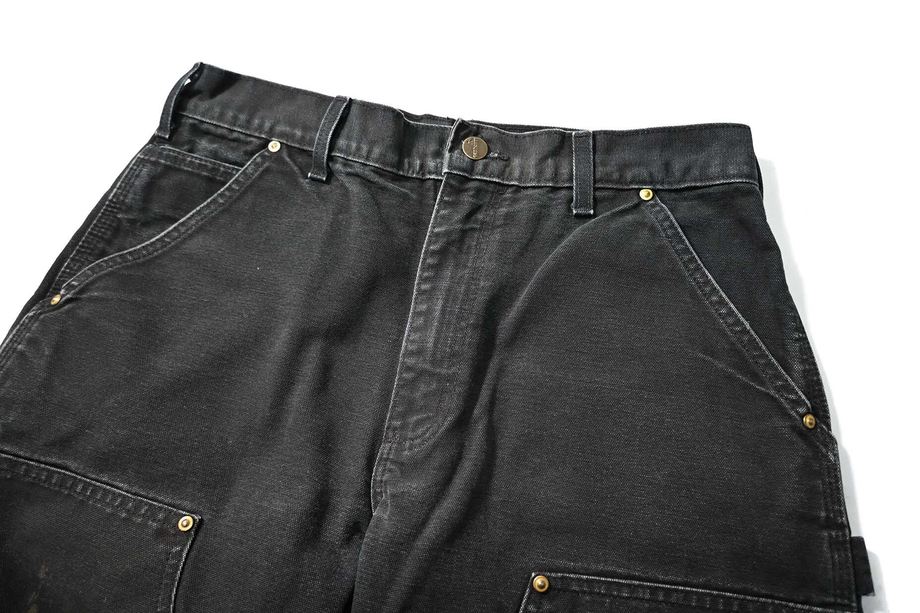 19' Used Carhartt Duck Double Knee Carpenter Pants Black made in USA カーハート [03-22762_01]
